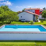 Situated approximately 10 minutes' drive from Pula Green Market, the 2-bedroom Holiday House Mirna With Heated Swimming Pool And Jacuzzi Pula villa features a terrace with views of the garden.